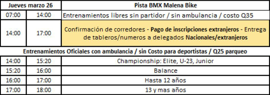 – 2 a 6 pm entrenos oficiales por edades y categorías. Con ambulancia y partidor